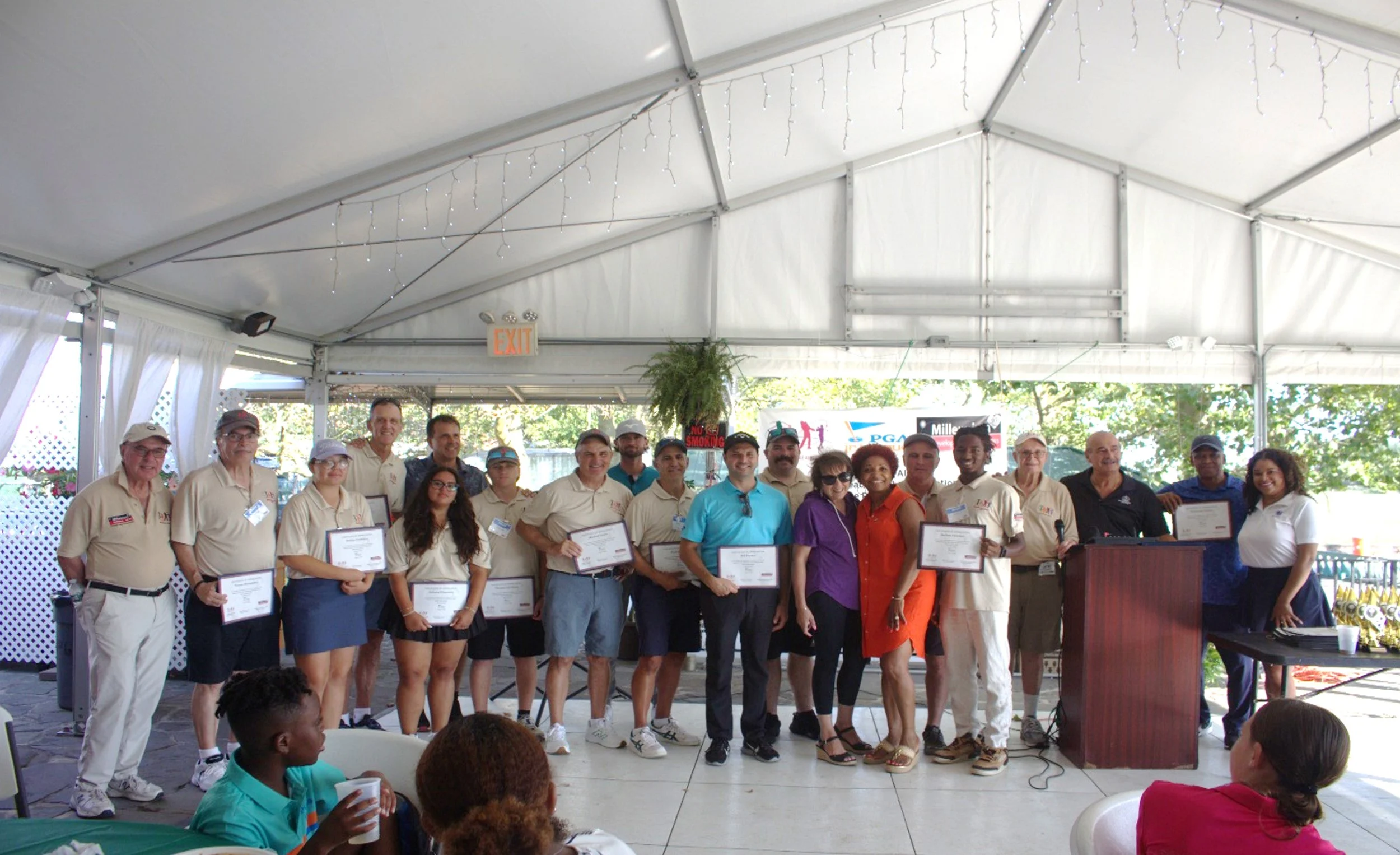 The kick-off of our Spring program at the Marine Park Golf Course on May 6 commenced with a full complement of thirty-five youngsters ages 8 -14 recruited from local schools with the assistance of Councilmembers Farah Louis, Mercedes Narcisse, and the (Millennium Development) Bergen Beach Youth Organization. The program continued for six consecutive Tuesdays, marking the most successful effort since our inaugural program in 2018. The final Spring session on June 10 culminated in a rousing family recognition ceremony, where students received their PGA tee shirts and hats, completion certificates, and trophies, and were treated to a buffet spread of delicious food.